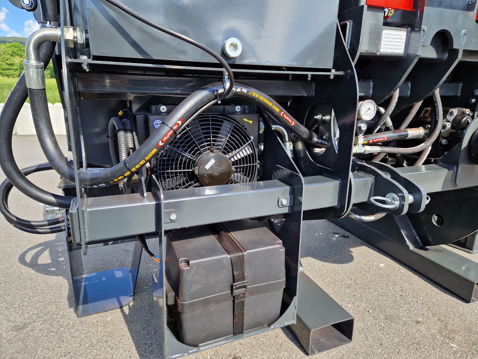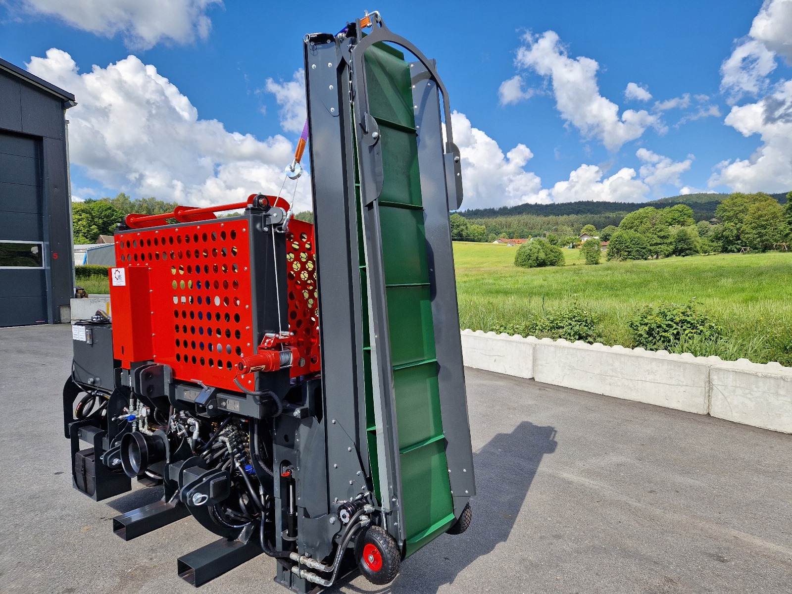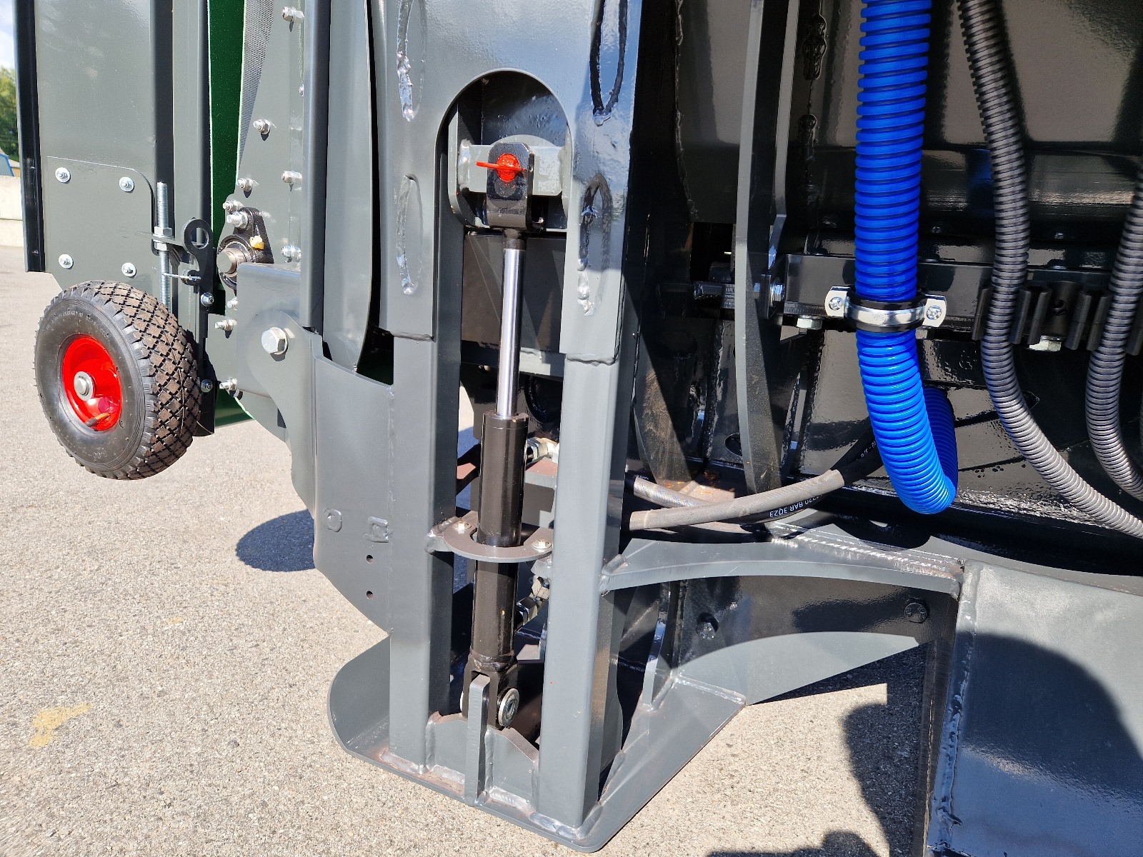 | Fahrwerk | hydraulisch absenkbares Fahrwerk (Optional) | Breite | 3,6 m | Höhe | 2,05 m | Tiefe | 1,5 m | Gewicht | 1800 | Jetzt neu! | serienmäßig mit Anschlüssen für Zusatzfunktionen 2x DW |