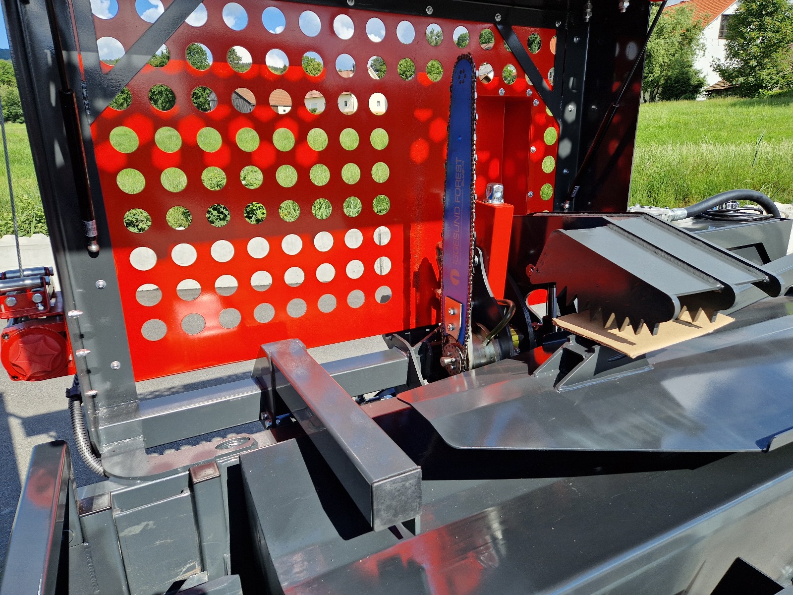 | Aggregat | 14 KW Harvester Aggregat 64cm Länge 20,5m/sekunde | Spaltkreuz | 16er Hardox Spaltkreuz | Ölkühler | ✓ | Hardox Spaltkreuze | 4er / 6er/ 8er / 12er / 16er | Spaltkeilhöhe | Hydraulische Einstellung | Hydraulisch angetriebene Kettensäge | ✓ | Breite | 2,8 m | Höhe | 2,8 m | Tiefe | 1,5 m | Gewicht | 1650 | Jetzt neu! | serienmäßig mit Anschlüssen für Zusatzfunktionen 2x DW |