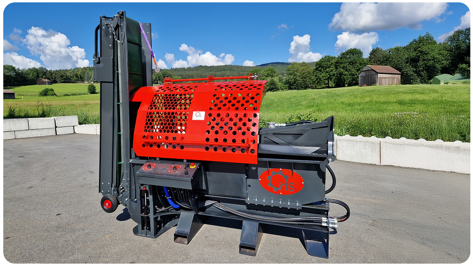 Entdecken Sie die leistungsstarken Sägespaltautomaten von MS Agrartechnik.